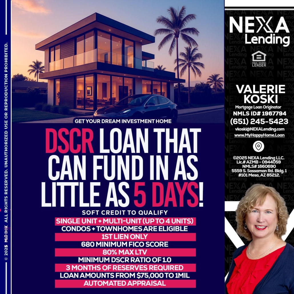 Hi, my name is Valerie Koski. I’m a Loan Officer with NEXA Mortgage LLC., offering personalized mortgage solutions, fast customized quotes, great rates and service with integrity.