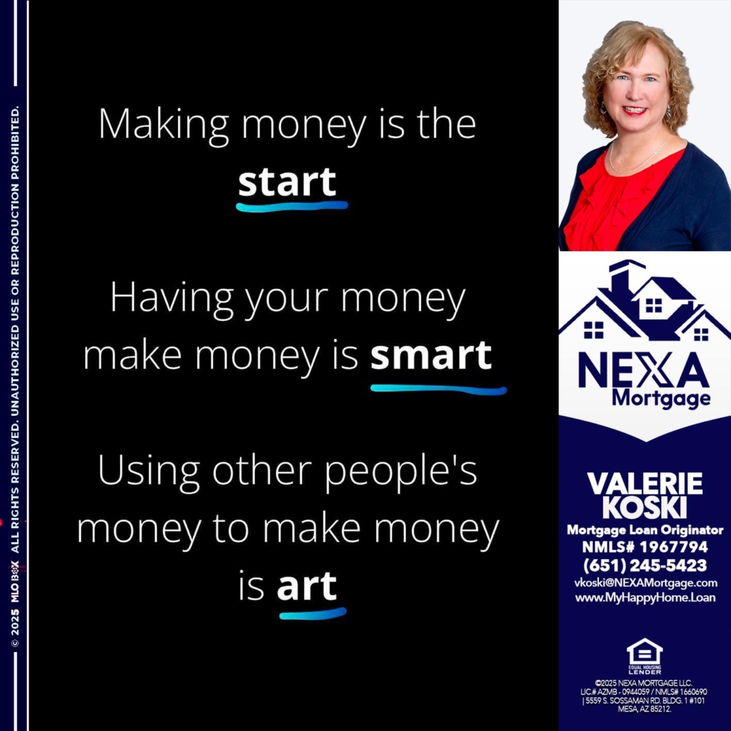 Hi, my name is Valerie Koski. I’m a Loan Officer with NEXA Mortgage LLC., offering personalized mortgage solutions, fast customized quotes, great rates and service with integrity.