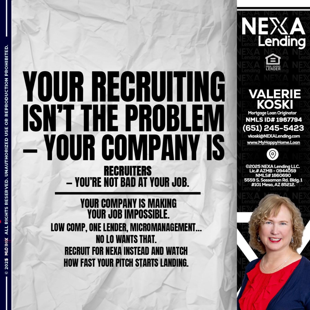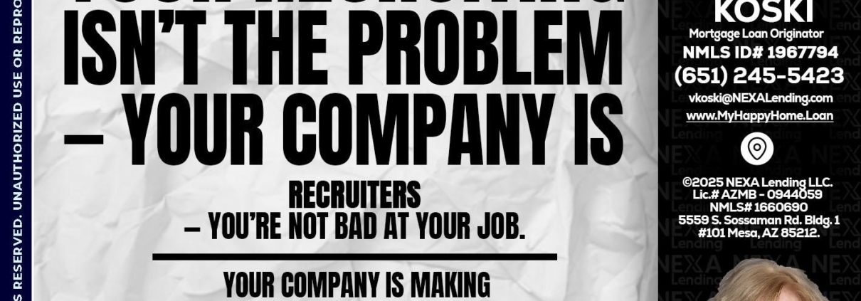Hi, my name is Valerie Koski. I’m a Loan Officer with NEXA Mortgage LLC., offering personalized mortgage solutions, fast customized quotes, great rates and service with integrity.